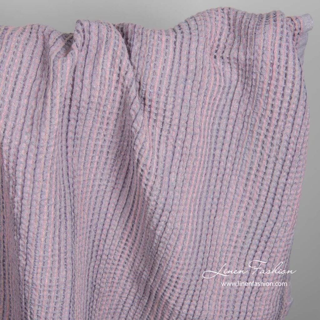 Praná ľanovo-bavlnená vafľová lilavá tkanina