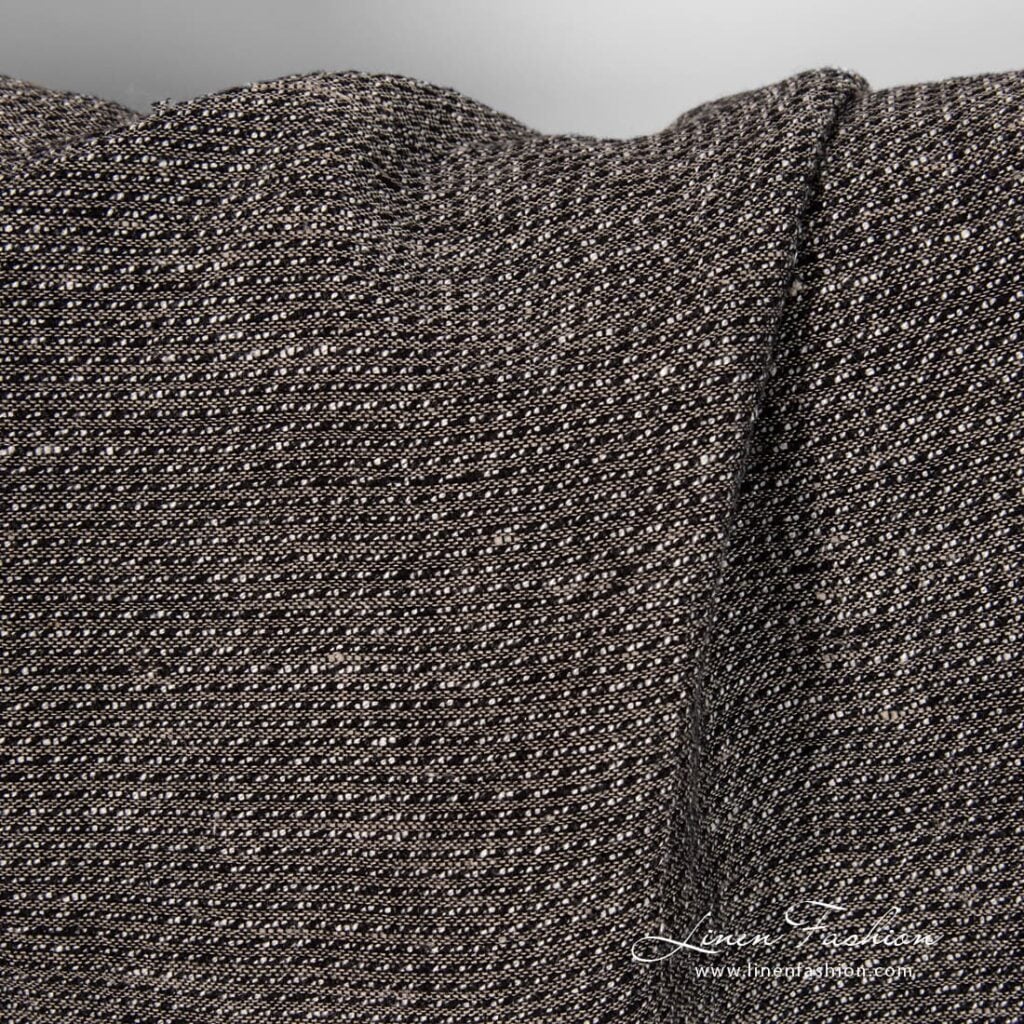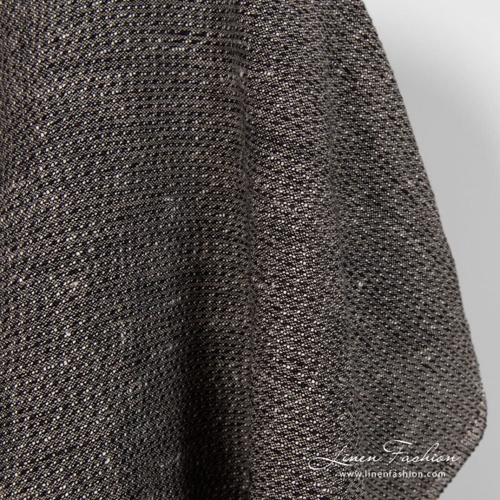 Ľanovo-bavlnená čierna dobby tkanina praná