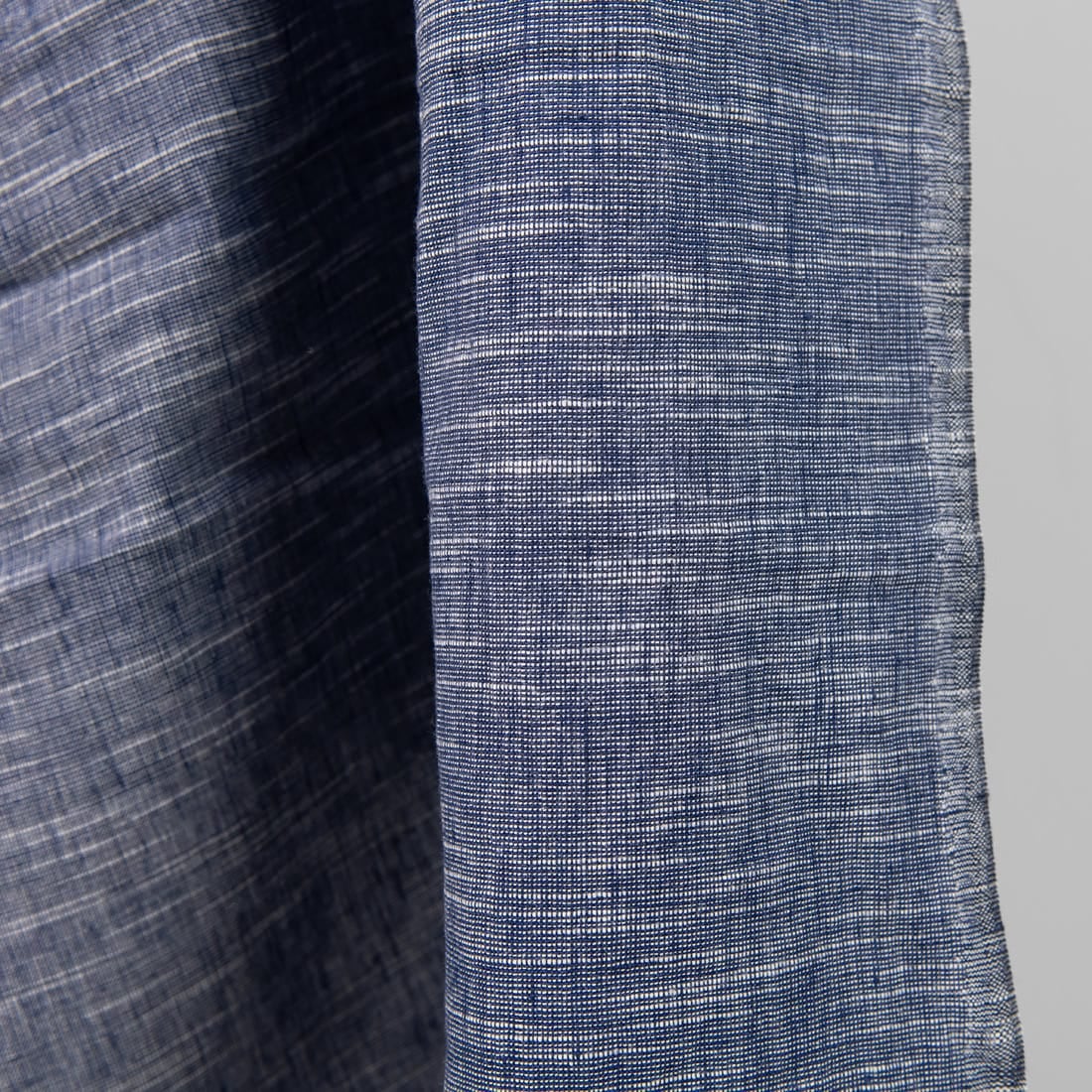 Tmavomodrá pruhovaná ľanová zmesová tkanina praná