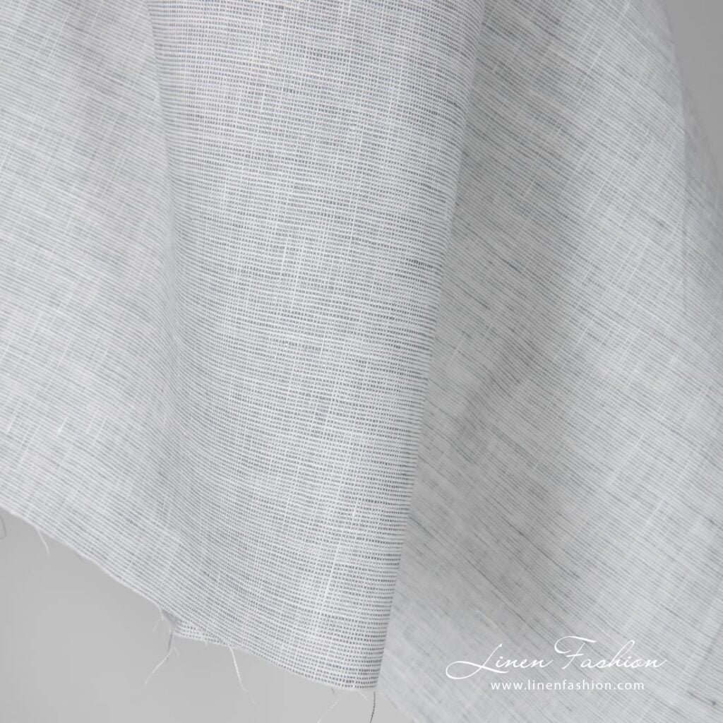 Široká bielo-modro-sivá melanžová ľanová látka