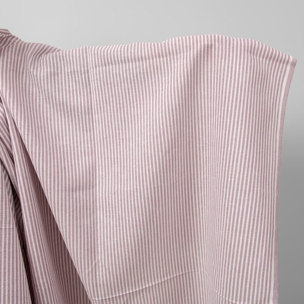 Široká ľanovo-bavlnená tkanina v bielych a orgovánových pruhoch