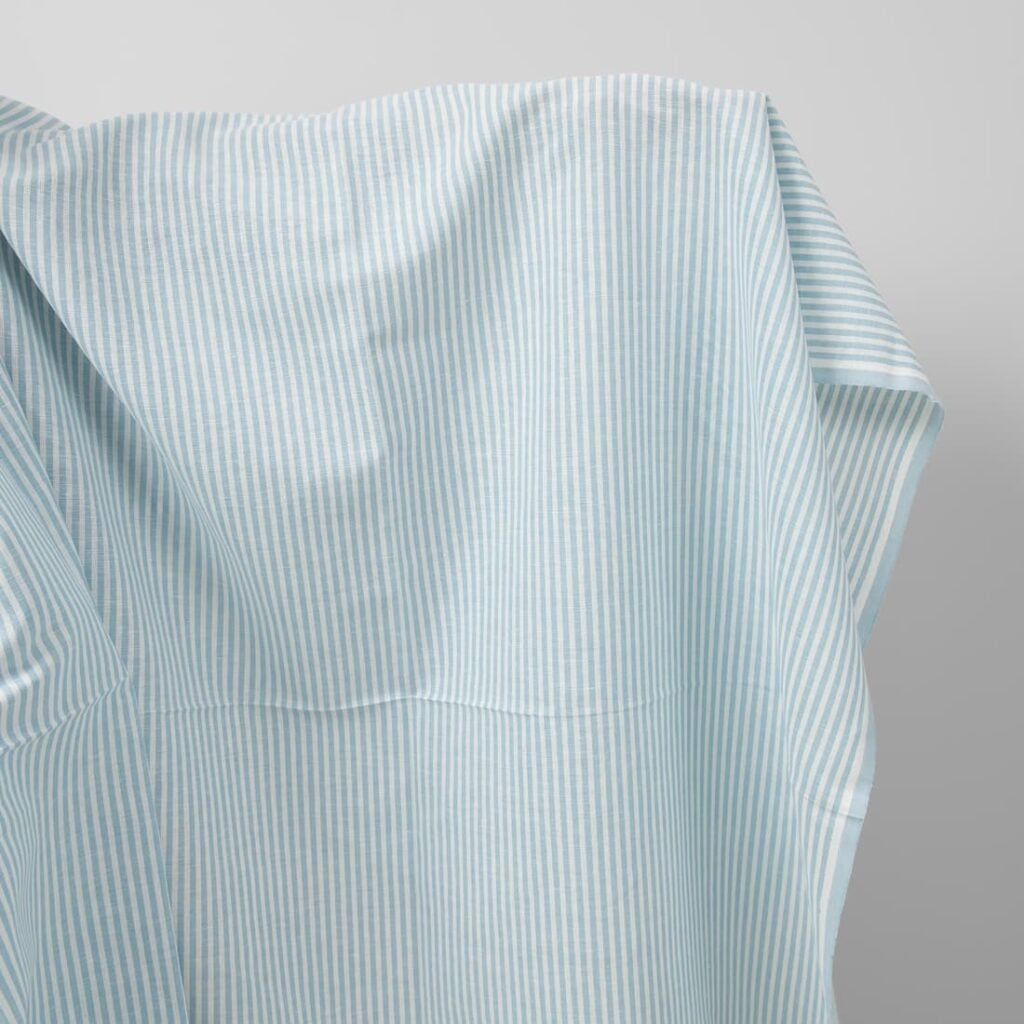 Široká ľanovo-bavlnená látka v bielych a svetlotyrkysových pruhoch