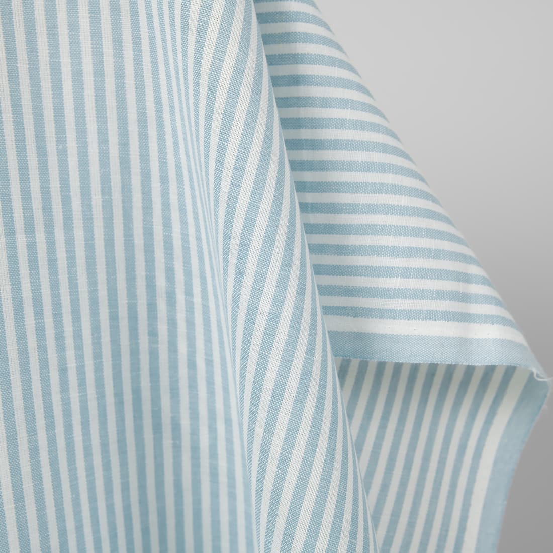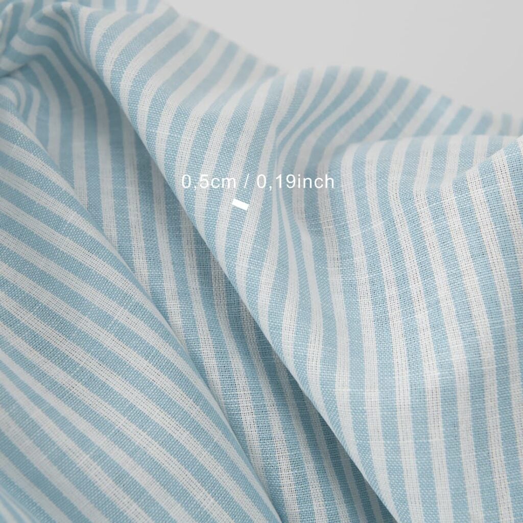 množstvo Široká ľanovo-bavlnená látka v bielych a svetlotyrkysových pruhoch