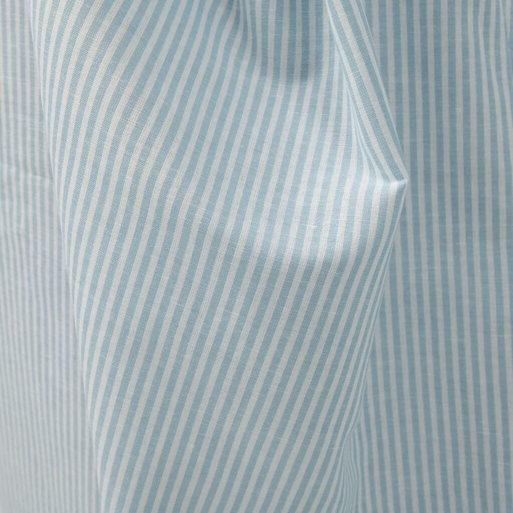 Široká ľanovo-bavlnená látka v bielych a svetlotyrkysových pruhoch