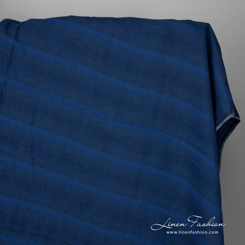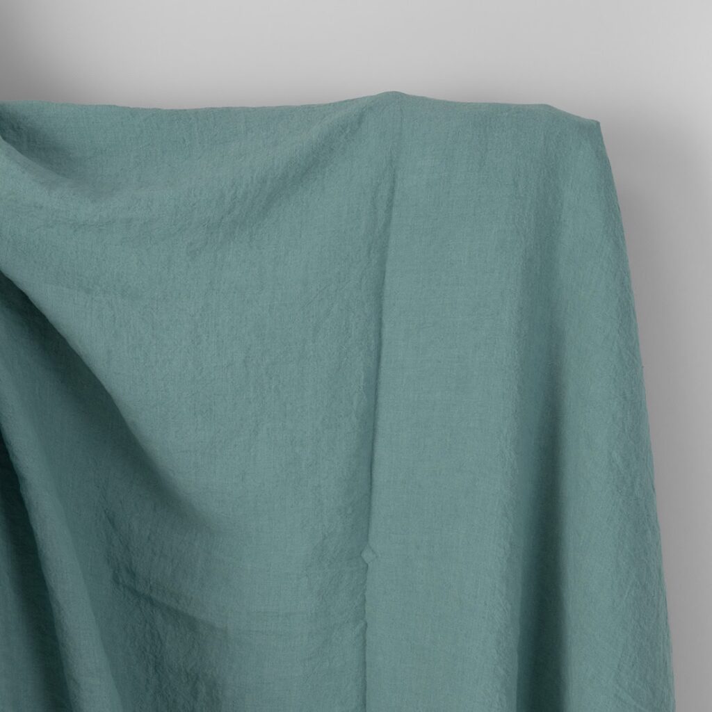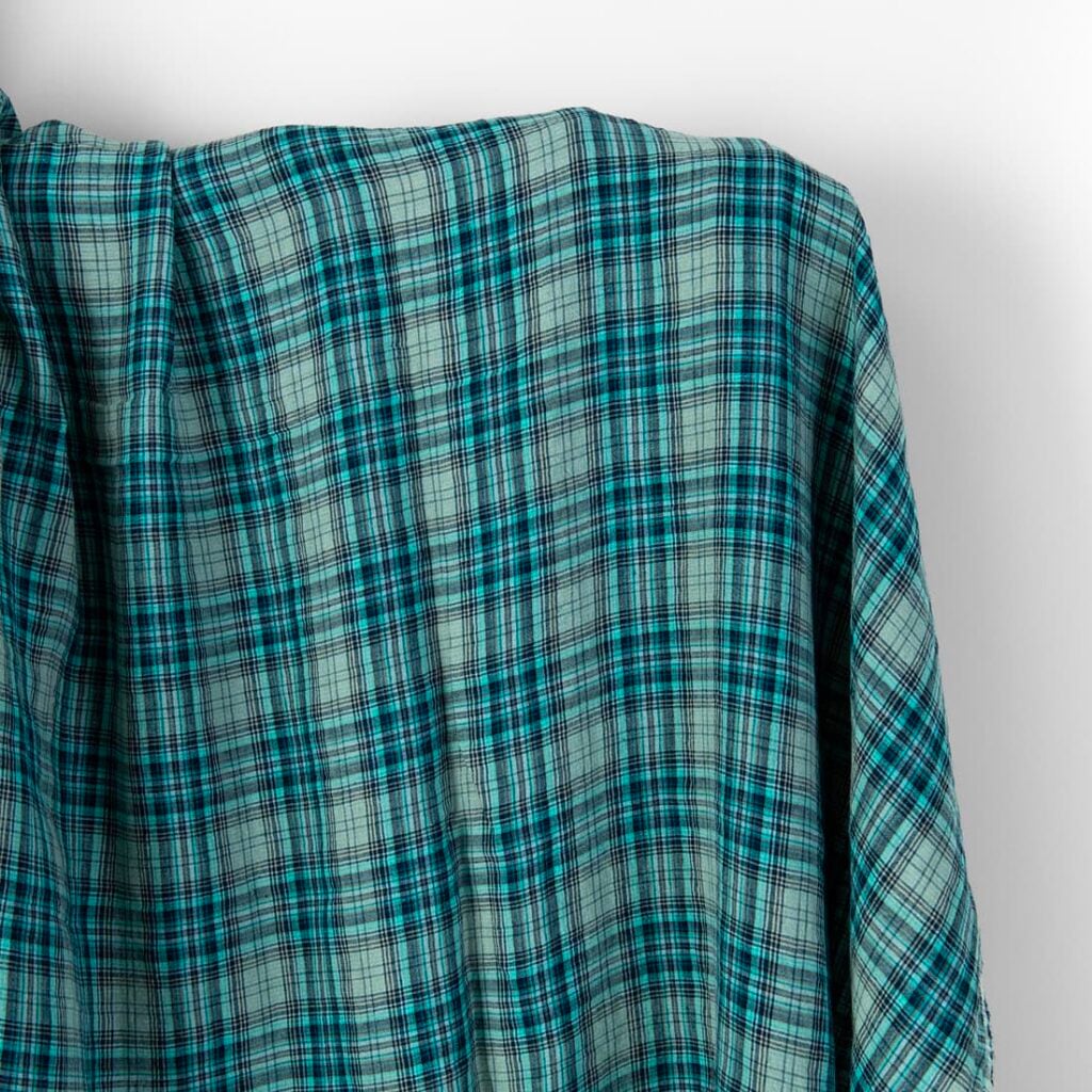 Široká praná ľanová látka sivo-tyrkysové kocky