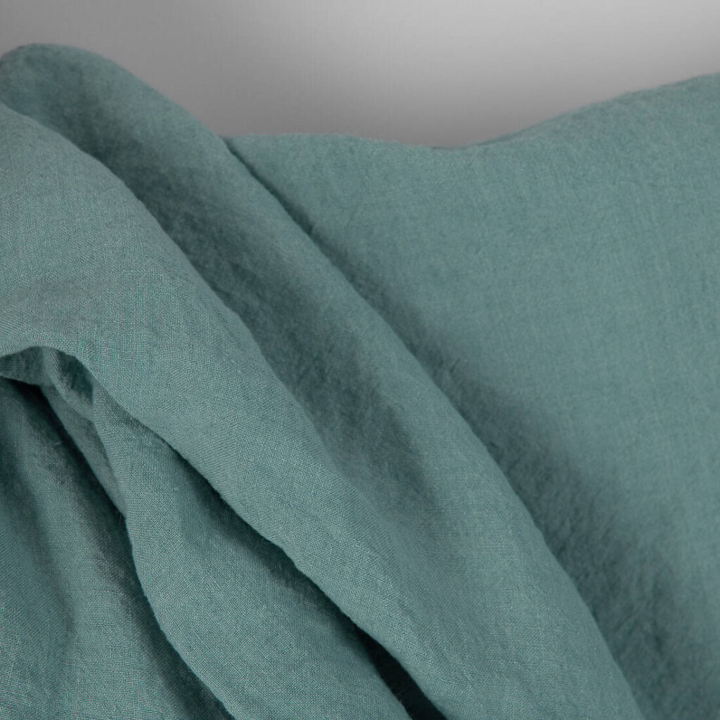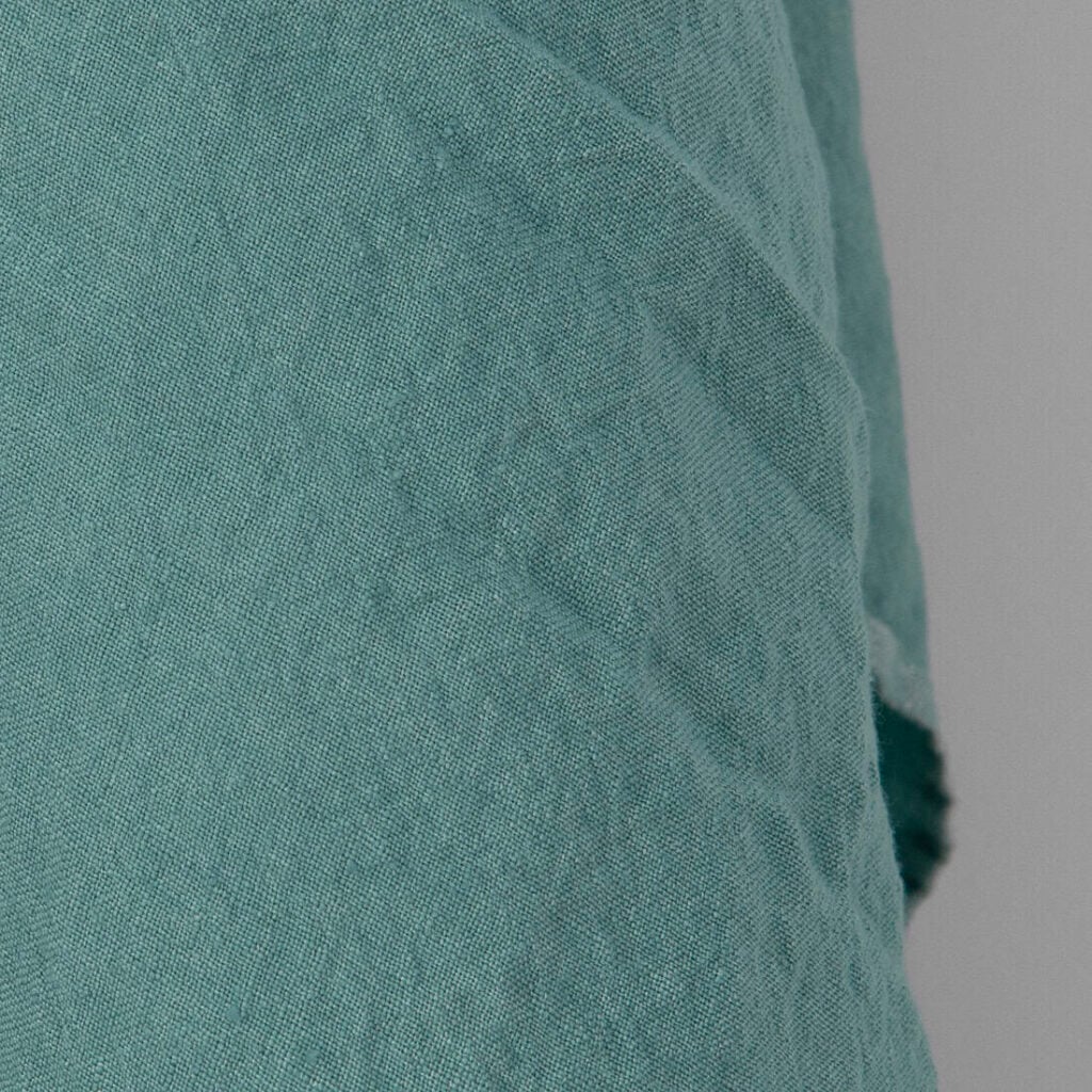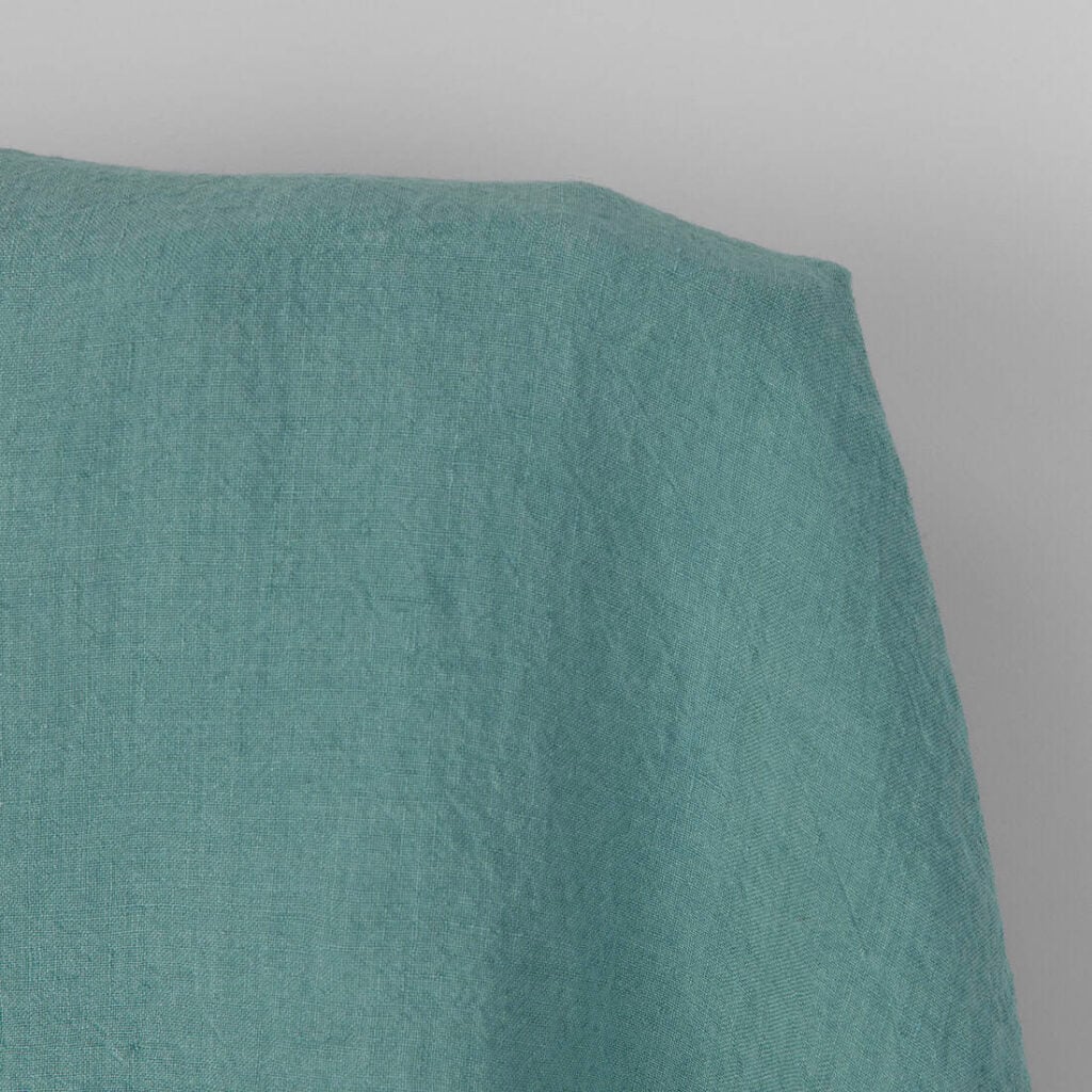 Široká ľanová tmavotyrkysová tkanina praná