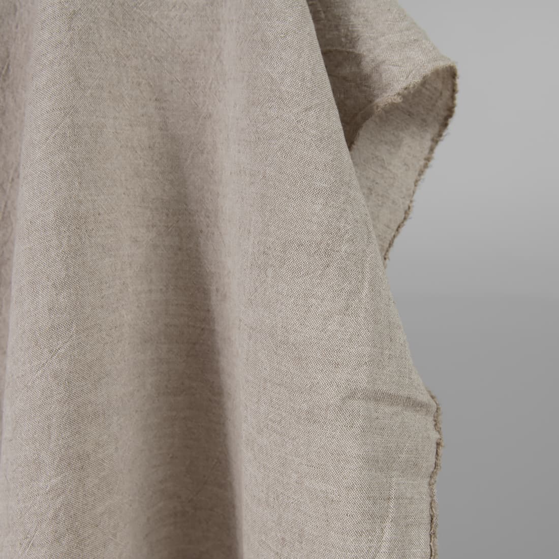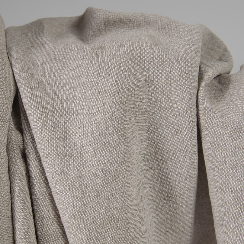 Široká hnedosivá ľanovo-bavlnená látka praná