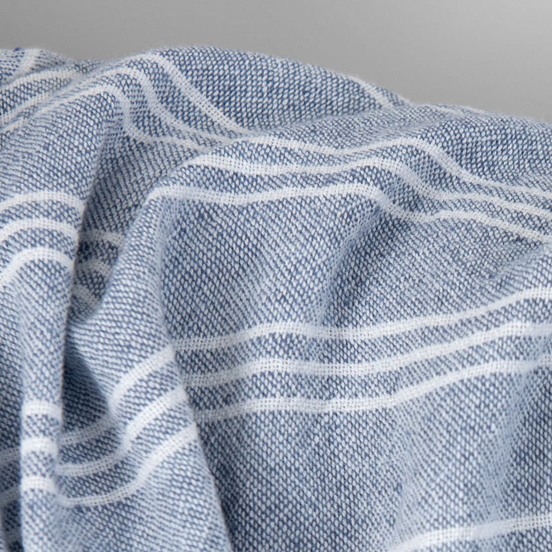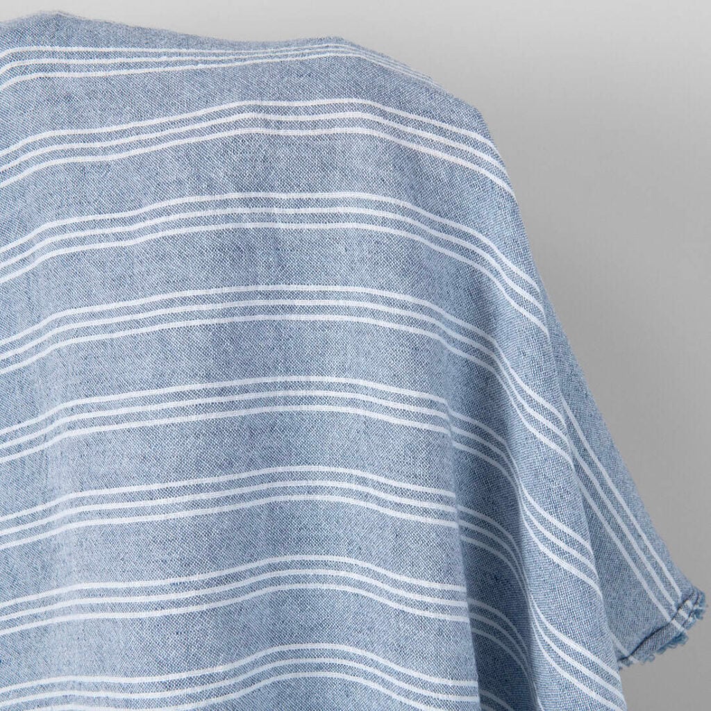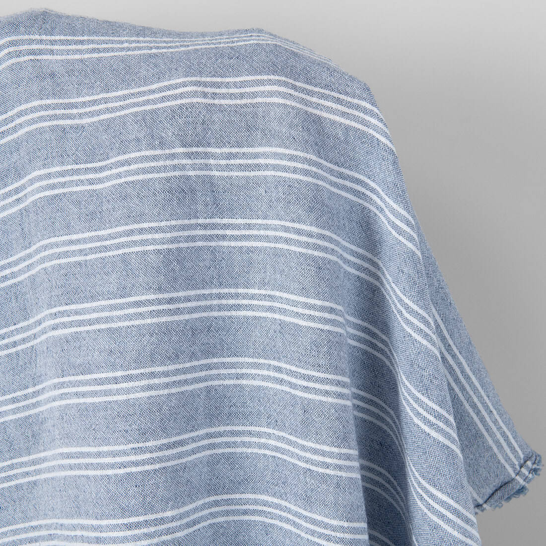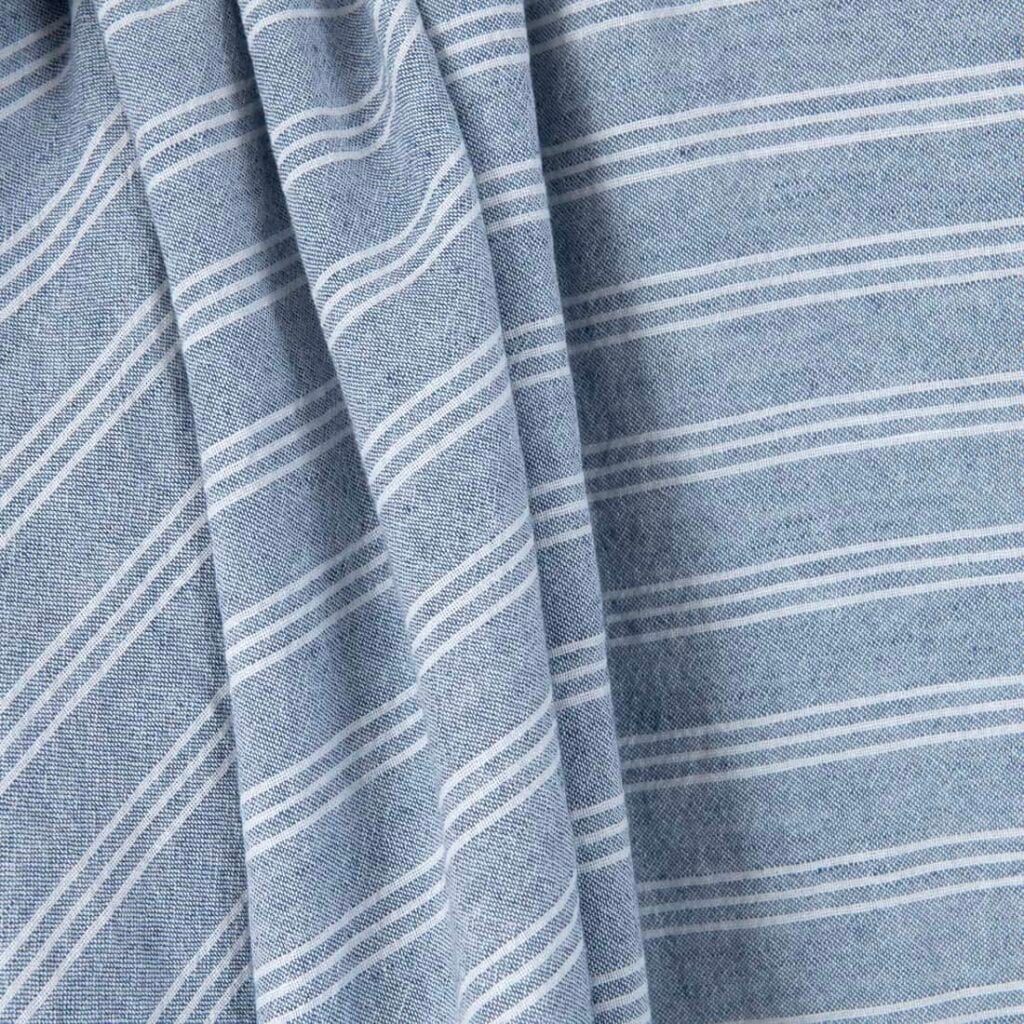 Široká ľanovo-bavlnená látka modrá s bielymi pruhmi