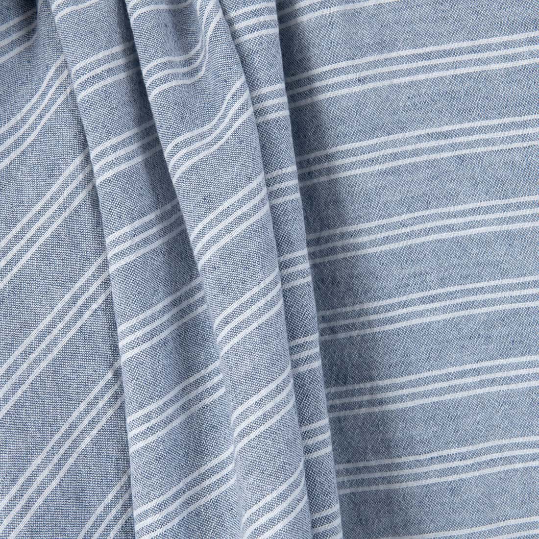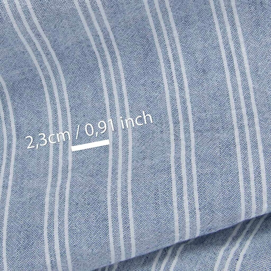 množstvo Široká ľanovo-bavlnená látka modrá s bielymi pruhmi
