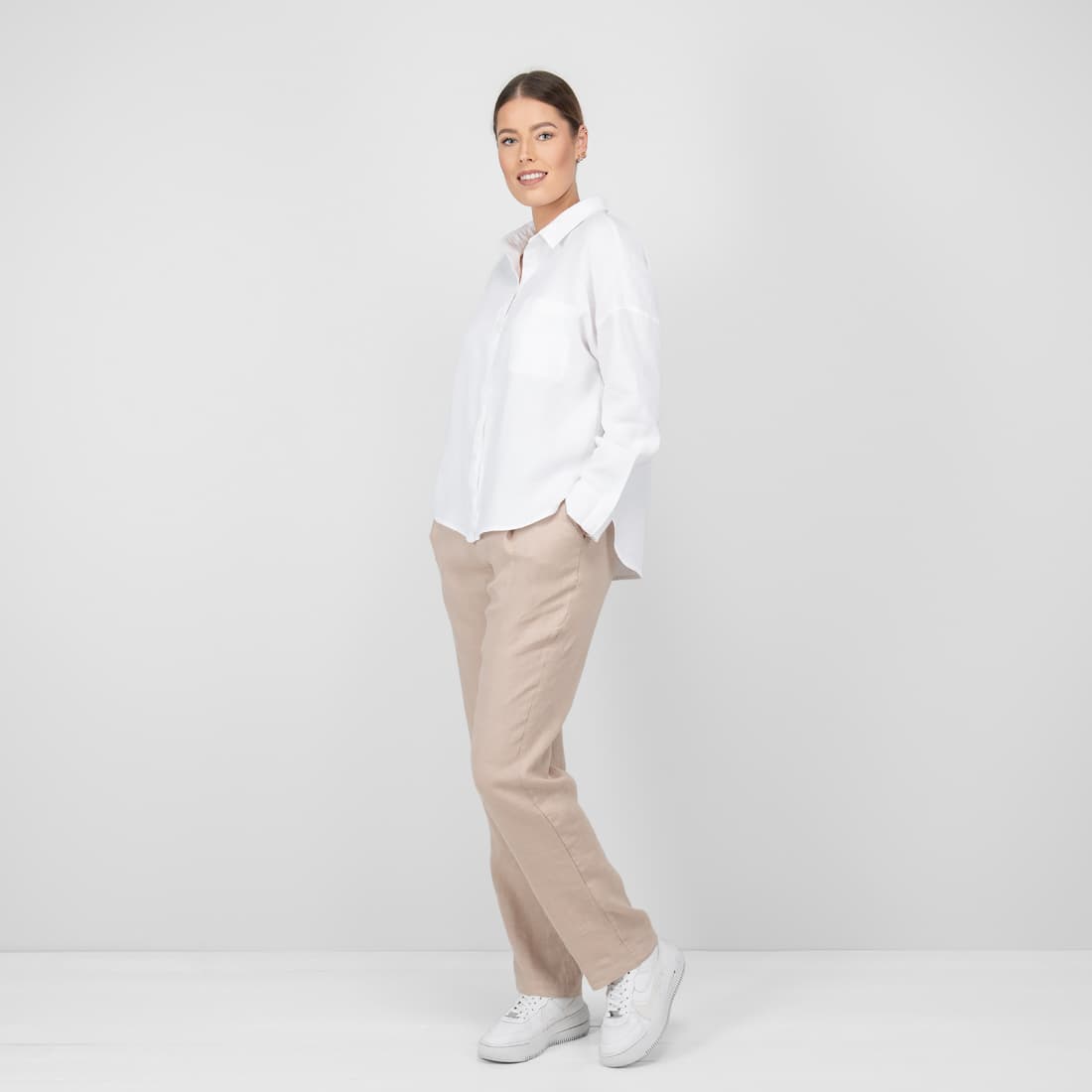 - Model: nadrozmerná košeľová blúzka s dĺžkou po boky