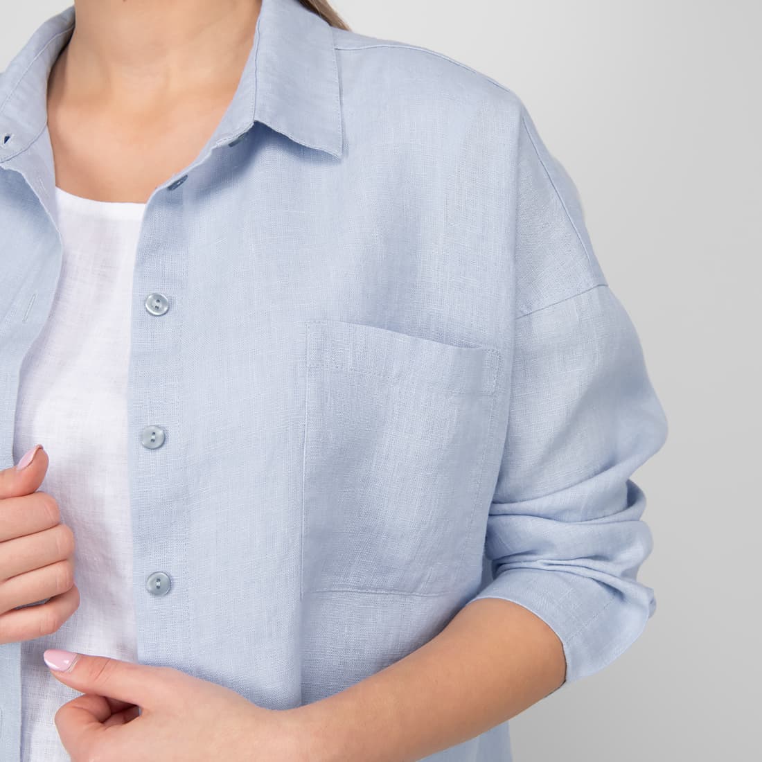 - Model: nadrozmerná košeľová blúzka s dĺžkou po boky