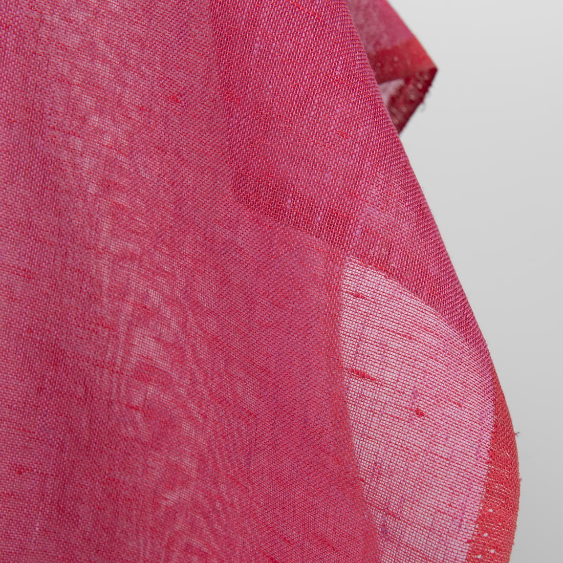 • Priehľadná ľanová látka melanžová, tkaná šarlátová a tmavoružová priadza