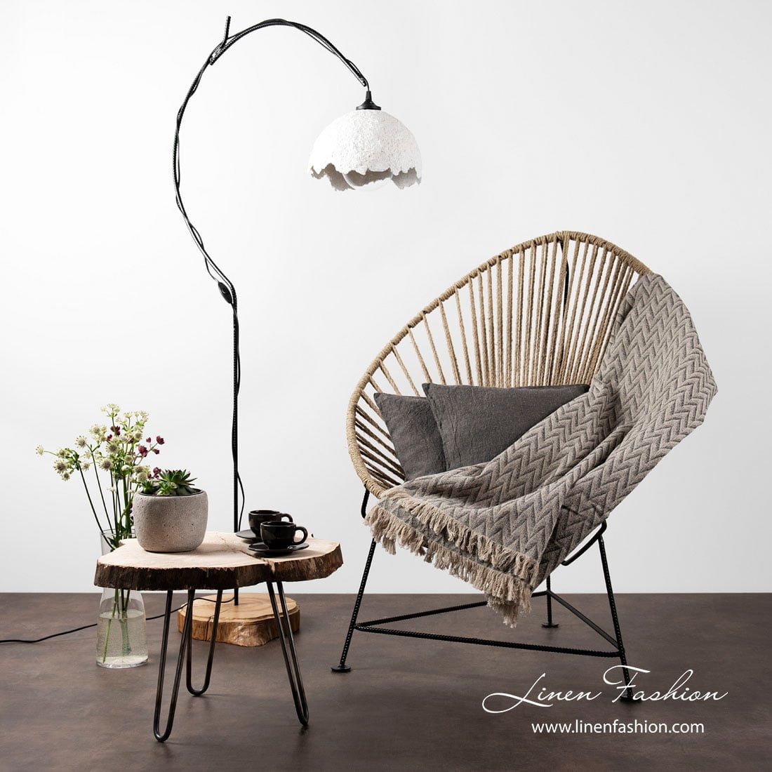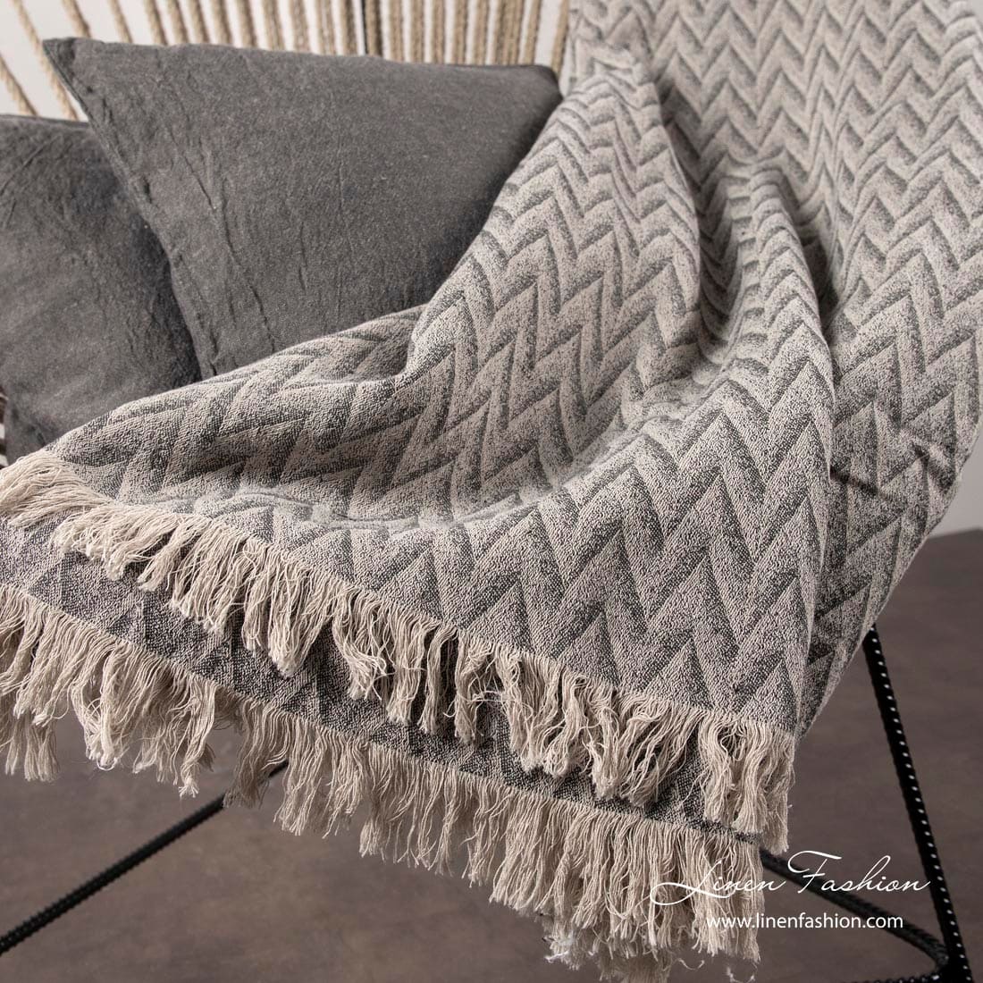 - Farba: zmes hnedosivej (blízka prírodnému ľanu) a tmavej grafitovo sivej priadze