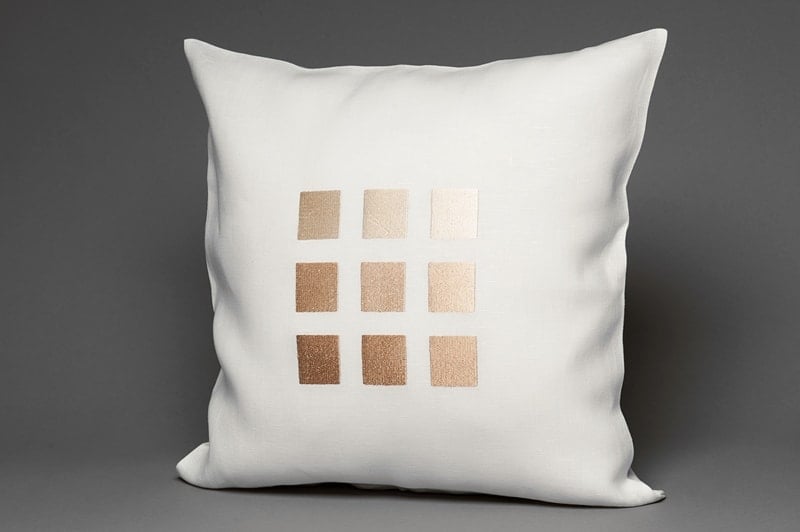 - Vzor: vyšívané štvorce v metalickej medenej farbe