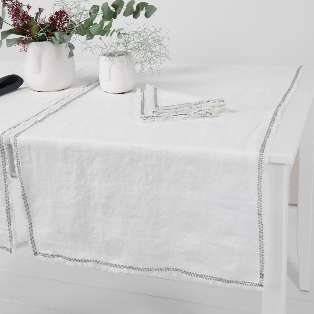 - Spracovanie: 1,5 cm voľné strapce, dekoratívny šev v sivej farbe