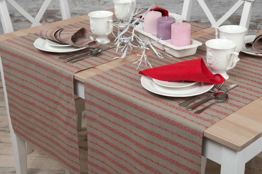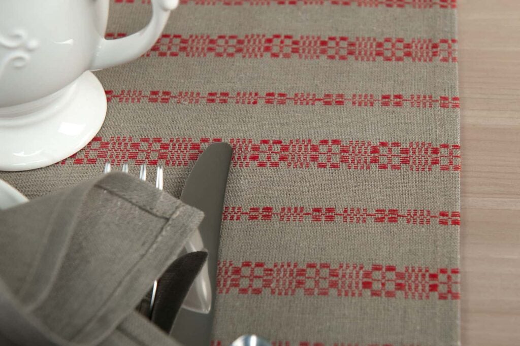 • Farba: zmes prírodného ľanu (nefarbený, hnedosivý), tmavobéžovej a červenej farebnej priadze