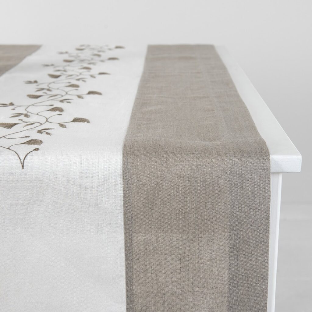 - Farba: okraje z prírodného ľanu (nefarbený, hnedosivý) a smotanovo biely (žltkastobiely) stred
