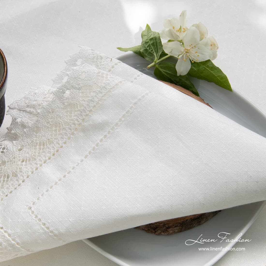 • Spracovanie: biely čipkovaný lem, dvojradová ažúra