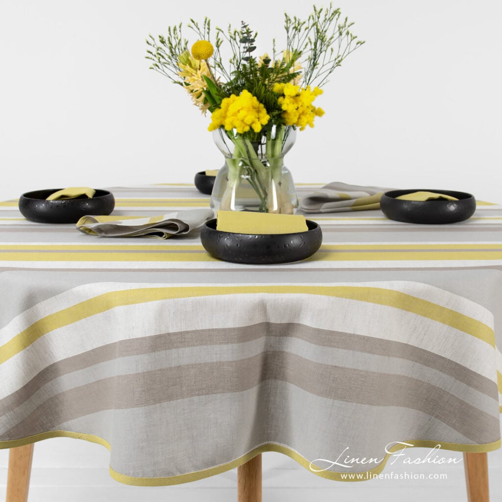 množstvo MIMOSA Obrus okrúhly/oválny sivo žltý