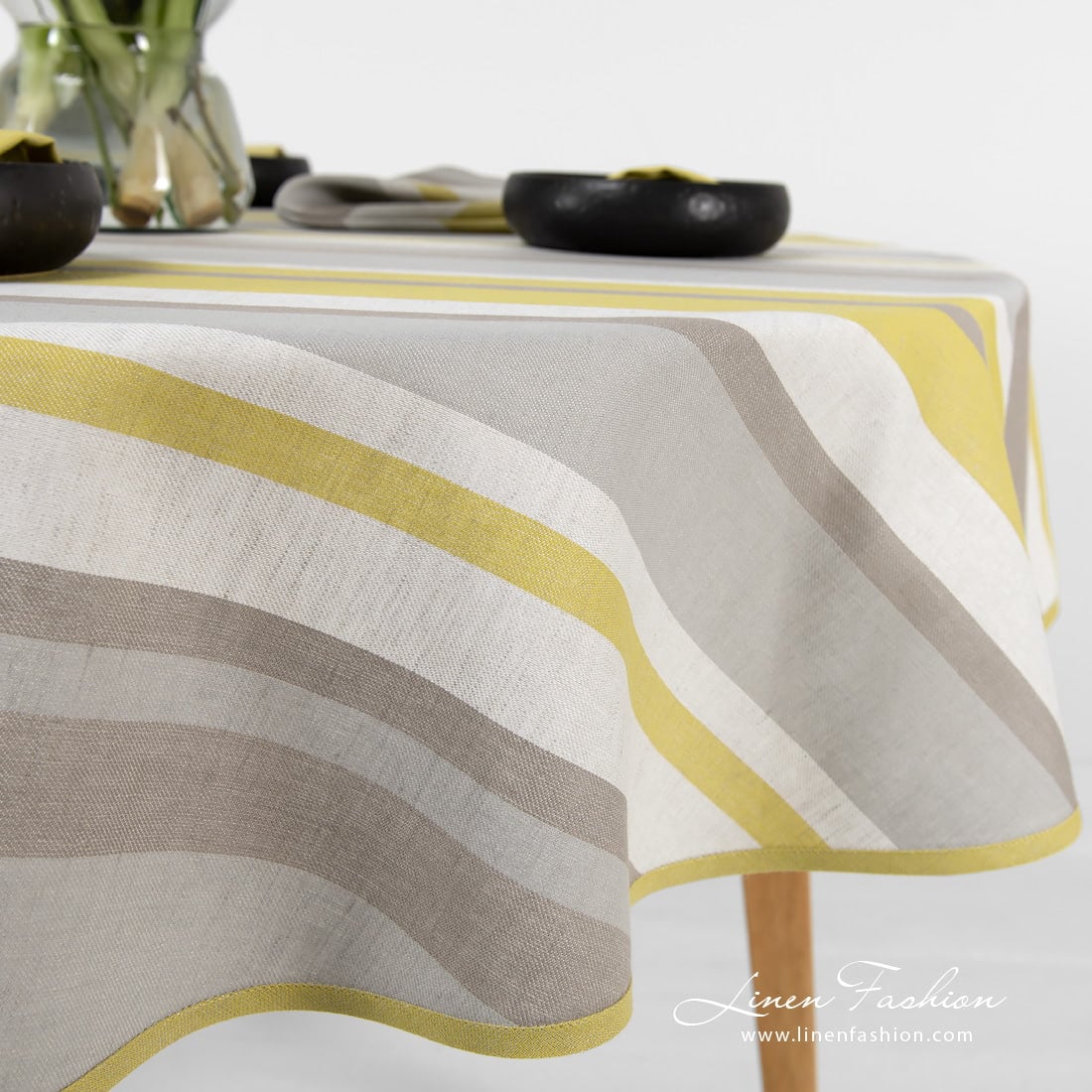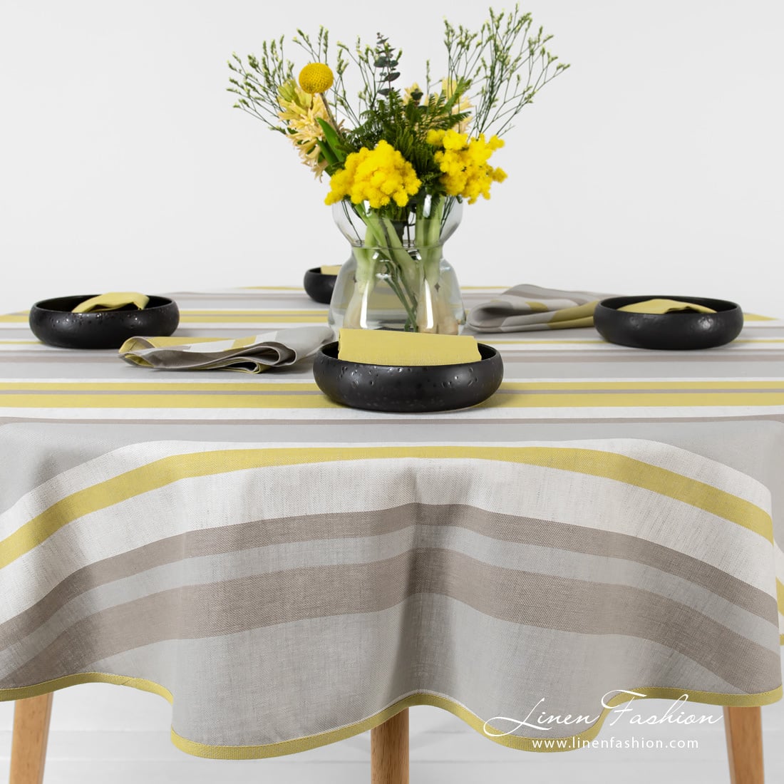 MIMOSA Obrus okrúhly/oválny sivo žltý