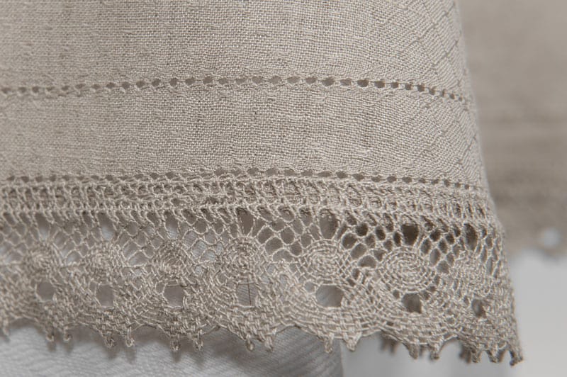- Spracovanie: lem z prírodnej ľanovej čipky, dvojradová ažúra
