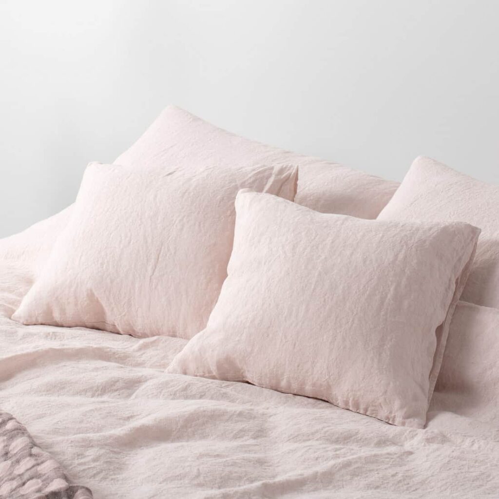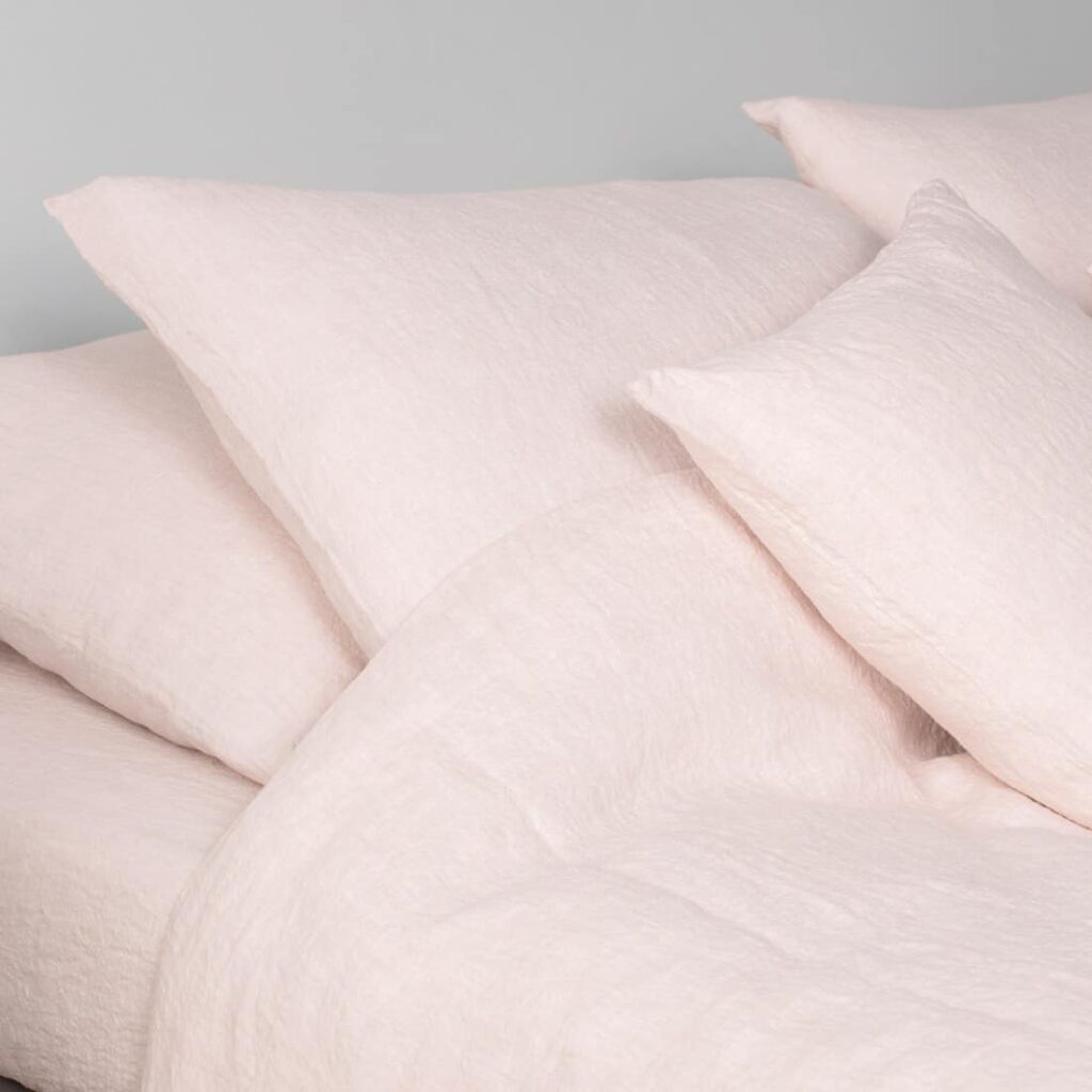 Mäkká ružová ľanová plachta. Dá sa kombinovať s obliečkou na paplón a obliečkou na vankúš z rovnakej kolekcie.