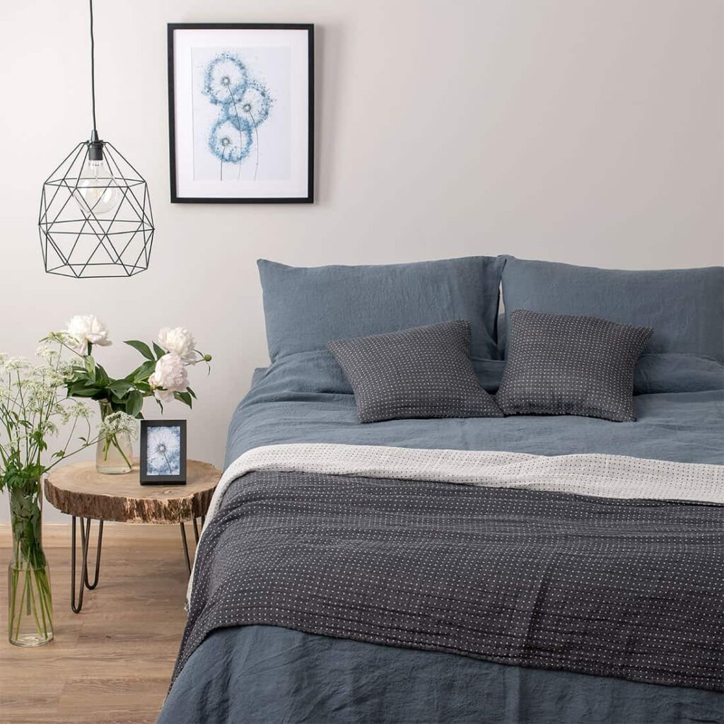 Tmavomodro-sivé klasické prestieradlo vyrobené zo špeciálne pranej čistej ľanovej tkaniny. Táto ľahká, husto tkaná tkanina je mäkká, jemná a odolná voči zrážaniu. Môže sa používať samostatne alebo v kombinácii so zvyškom kolekcie „Graffiti“.