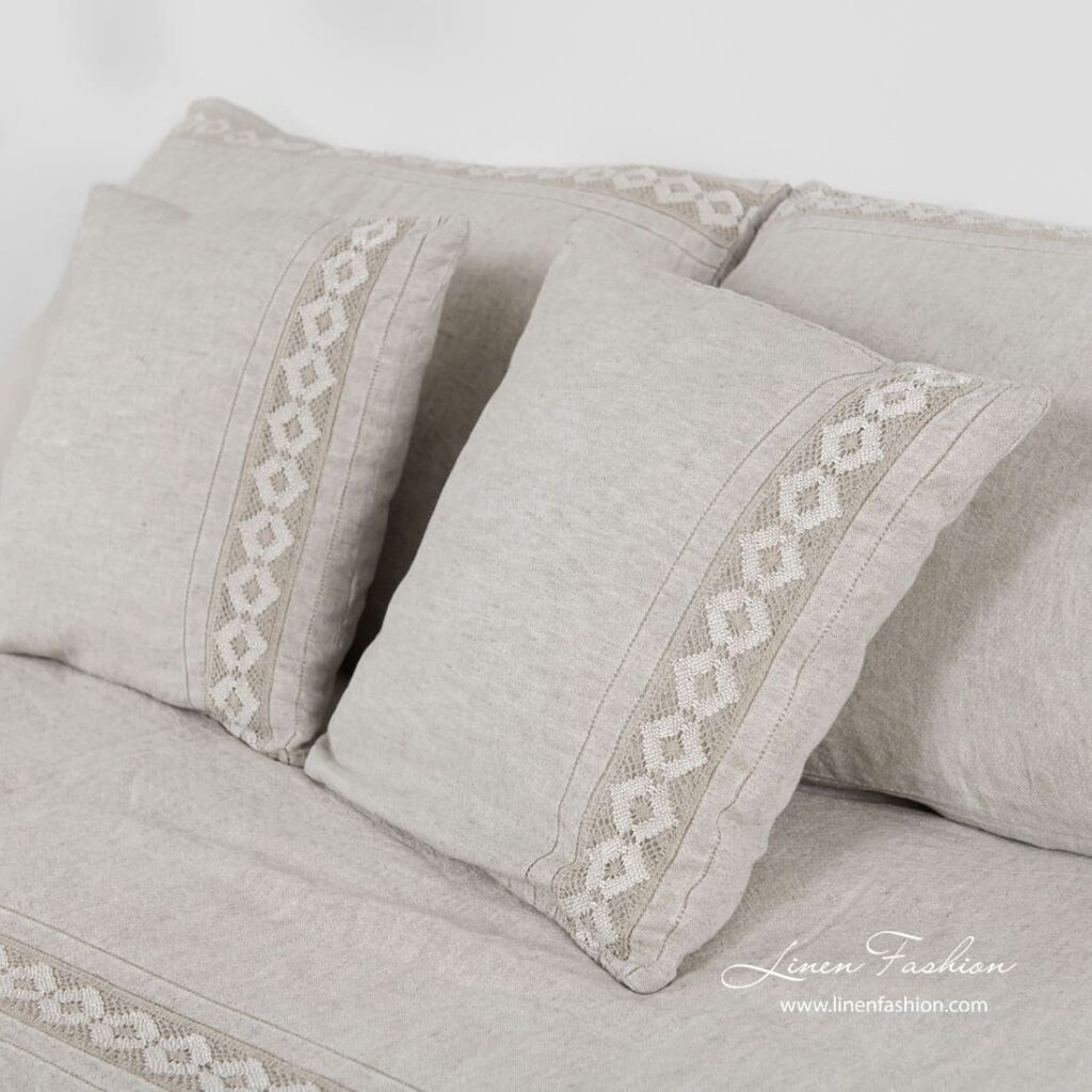 VINGO ľanovo-bavlnená obliečka na vankúš S ozdobnými čipkami.